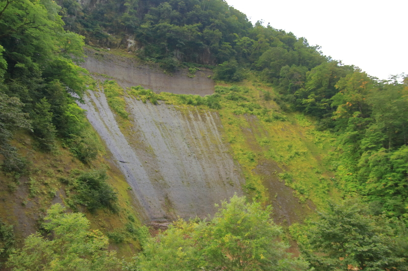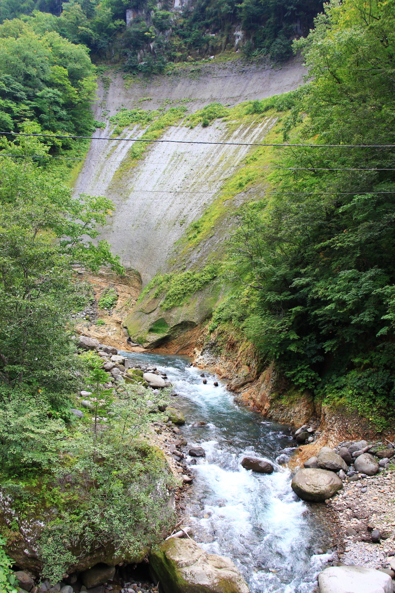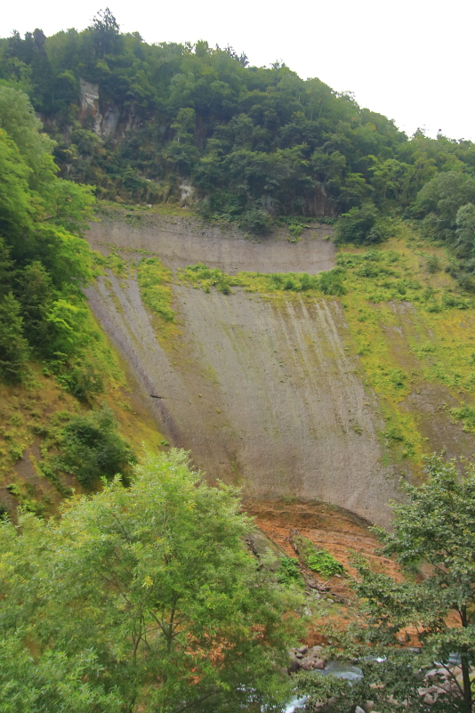 砂防ダムの前後に高さ約50mの崖が続く。(2019年9月10日撮影)