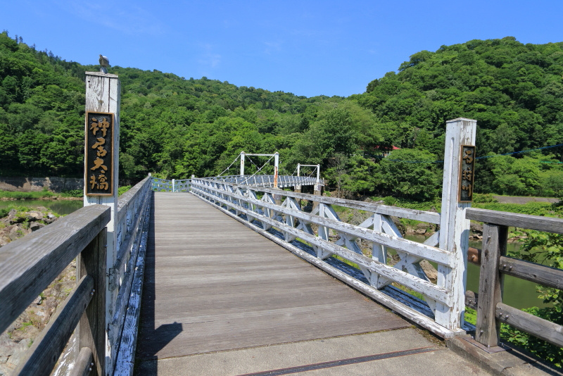 トムラウシ山への登山口にもなっている滝見台は、橋の手前から約1時間から1時間半で登れるが、ほとんどが急な坂道になっており、倒木も多いのである程度の覚悟は必要だ。天気が良ければ眼下に羽衣の滝と旭岳が一度に見られる。敷島の滝も見られるというが、かなり小さくしか見ることはできないが、忠別川の上部の渓谷は見ごたえがある。(2019年9月10日撮影)