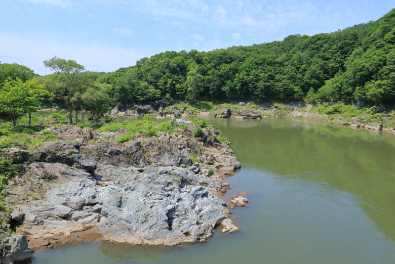 クライミングの名所でもあり、素晴らしい景色の中ラフティングも楽しめる。(2020年7月26日撮影)