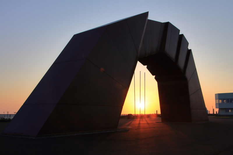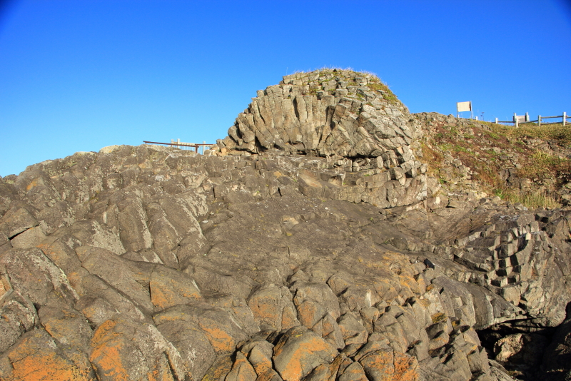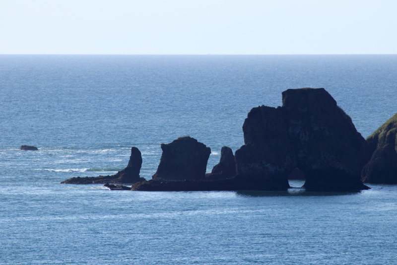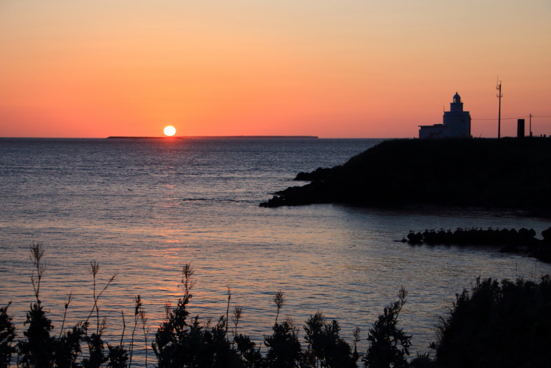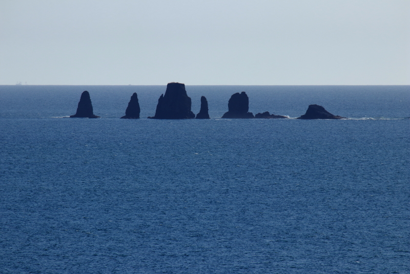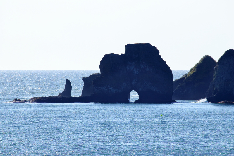 落石漁港から見える眼鏡岩近くには取り付けなさそうで、港の上から見るとちょうど穴も見えて良いと思われる。(2020年9月29日撮影)